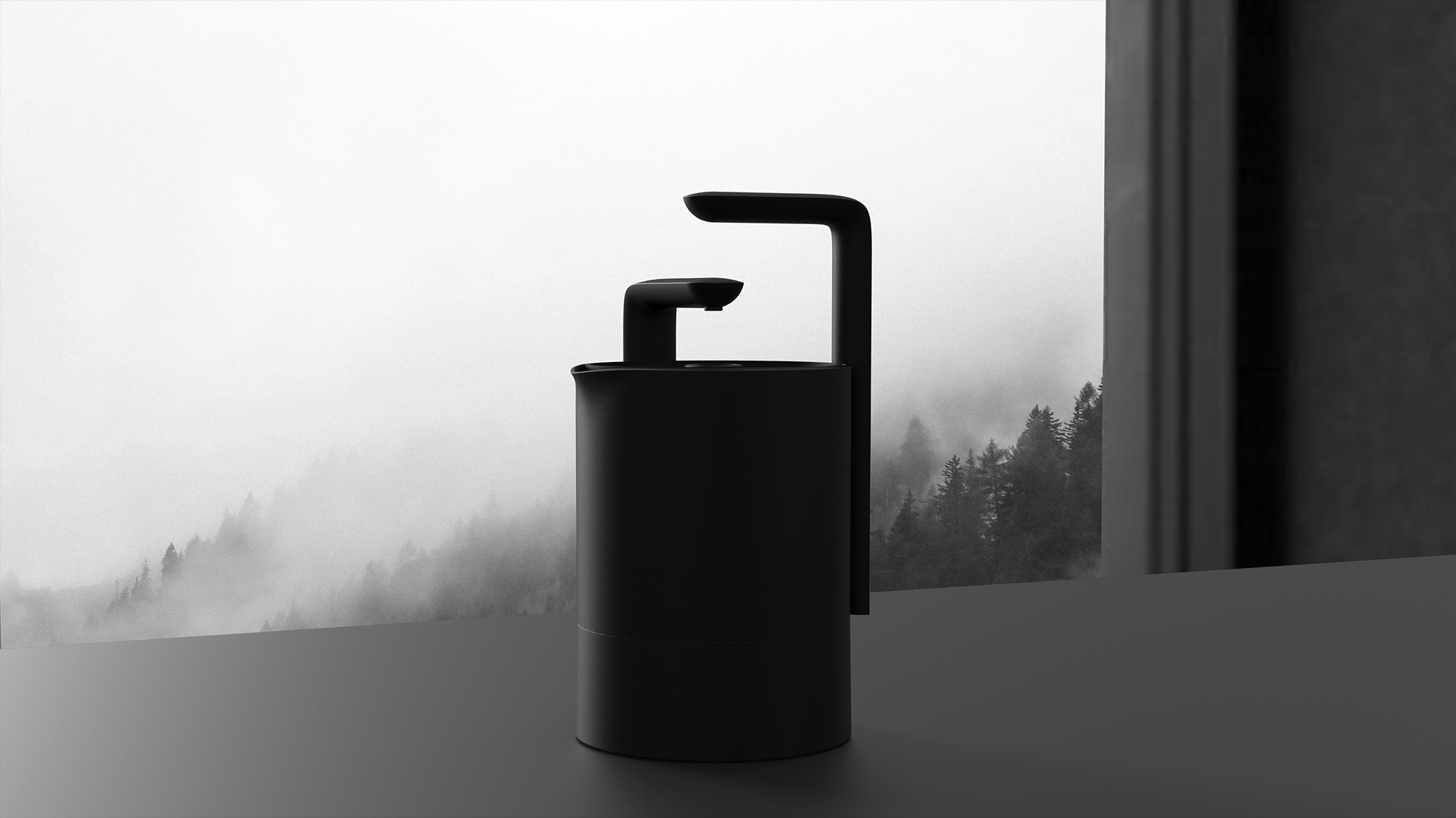 This is a kettle capable of drawing water from a pipeline into the pot and heating it. The faucet above and the handle on the pot body share a unified shape, extending upward together—a design that conceptually resembles the upward growth of greenery toward the sky. At the same time, this allows the product to occupy minimal lateral desk space, enabling users to place it effortlessly on a tabletop for convenient water access, boiling, and drinking.